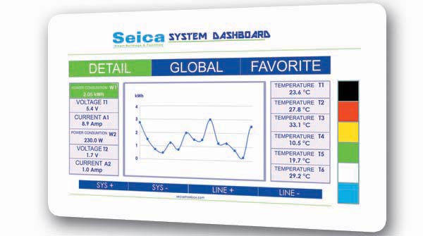 工業(yè)監(jiān)控節(jié)省時(shí)間,并提供了生產(chǎn)線狀況的全面概述。下面的表格代表了 Seica Suite 界面。所有的傳感器都由一個(gè)控制軟件顯示在一個(gè) Windows 平臺(tái)上,并且可以自定義用戶界面。